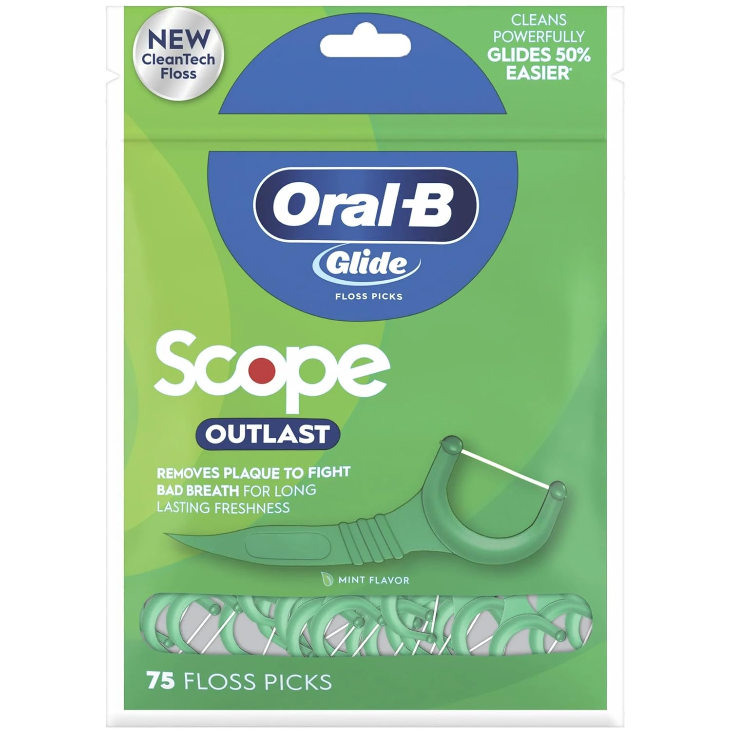 - Pack of 1 x Oral-B, Scope Floss Picks, Outlast, 75 Floss Picks