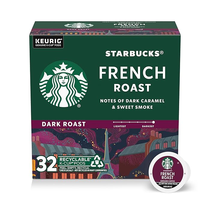 - PREMIUM COFFEE IN A K-CUP POD: Enjoy the Starbucks coffee you love at home with a box of 32 Starbucks French Roast Dark Roast K-Cup pods.